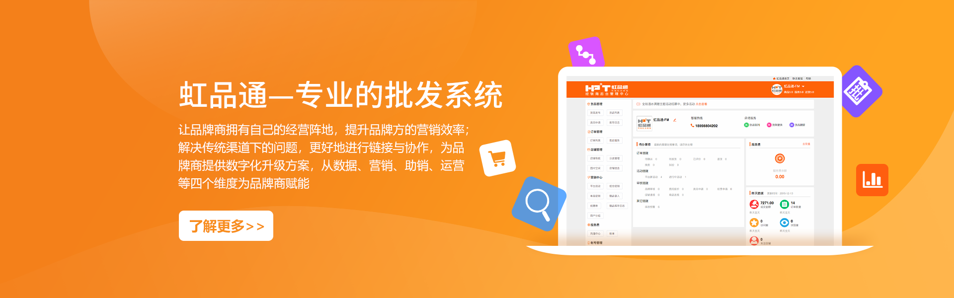 南寧虹品通軟件科技有限公司成立于2014年,是一家開發(fā)軟件技術(shù)服務(wù)公司。公司總部位于中國綠城南寧市,專注軟件行業(yè)系統(tǒng)支持和供應(yīng)鏈大數(shù)據(jù)開發(fā),并將其應(yīng)用于商業(yè)領(lǐng)域。掌握供應(yīng)鏈系統(tǒng)研發(fā)、商品流通大數(shù)據(jù)、批發(fā)零售商城等核心技術(shù),并持有多項(xiàng)技術(shù)專利和著作權(quán)。公司致力于幫助生產(chǎn)廠家、商品流通、銷售型企業(yè)向互聯(lián)網(wǎng)化轉(zhuǎn)型升級(jí),利用互聯(lián)網(wǎng)獲取客戶、洞察市場(chǎng)、服務(wù)客戶